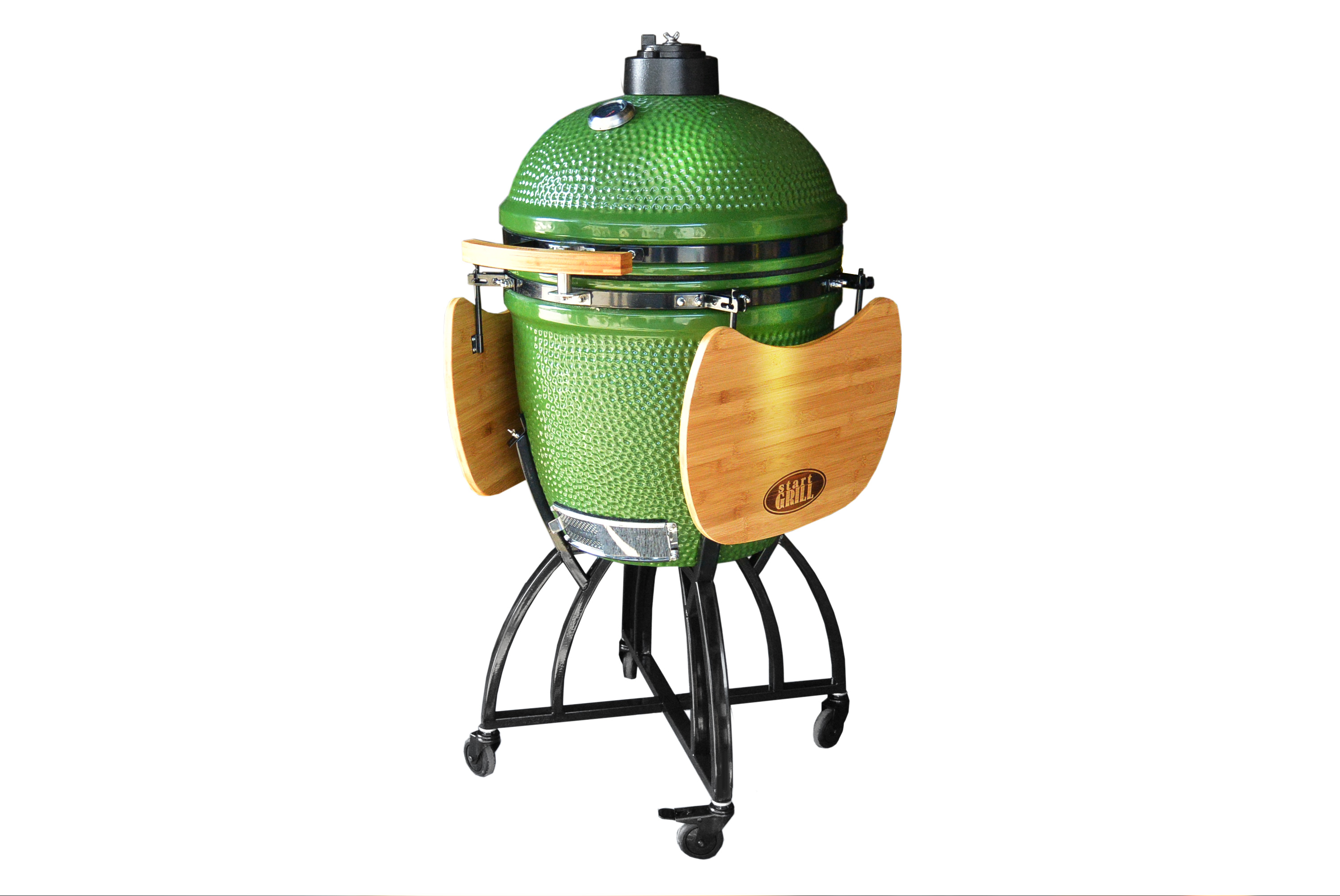 Керамический гриль, в отличие от других жаровен, способен войти в активное рабочее состояние уже через 10-15 минут после начала работы с ним, тогда как другим жаровням понадобится до получаса времени на разогрев. Модель имеет увеличенные габариты, её вес составляет 80 килограммов. Объёмы жарочной поверхности – 495 миллиметров – позволят собрать, завладеть вниманием и накормить большую компанию друзей. В нём можно жарить, печь, запекать. В любую погоду, вне зависимости от температуры окружающей среды керамические стенки сохранят тепло, равномерно распределят его, блюда получатся вкусные и сочные.